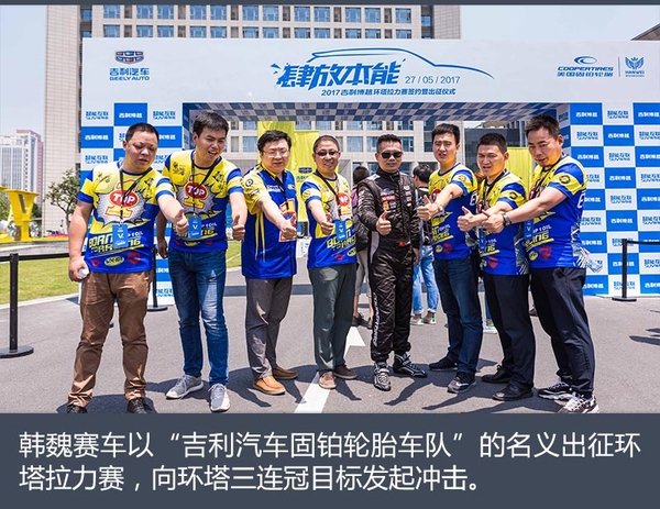 2016年吉利汽车第一次参与国际性越野赛事——环塔拉力赛,通过与韩魏赛车车队的合作最终赢得汽车组全场冠军。有了第一次的尝试,并获得了喜悦的胜果,今年吉利汽车继续携手韩魏赛车,以“吉利汽车固铂轮胎车队”的名义出征环塔拉力赛。通过出征仪式能够看出这个团队对卫冕冠军的可能是信心满满,接下来将向环塔三连冠目标发起冲击。