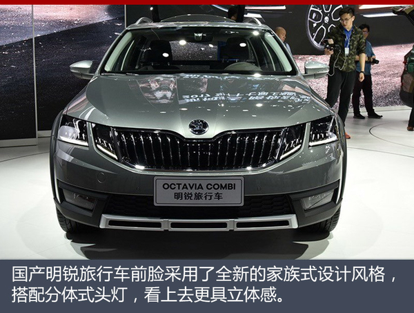 国产明锐旅行车整体轮廓变化不大,前脸变化较为明显。全新的进气格栅面积加大,并采用了镀铬进行装饰,搭配分离式的前大灯使前脸看上去更具立体感。车标下方的中网格栅部位使用了宽幅装饰条,雾灯和下进气网的装饰条同样进行了调整。