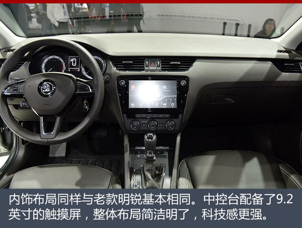 内饰方面,国产斯柯达明锐旅行车与老款明锐基本相同,中控台设计更为简洁。新车配备了9.2英寸的触摸屏,并搭载了斯柯达全新的互联系统,可支持苹果CarPlay、Android Auto,科技感更强。同时新车还配有双温区自动空调,并带有花粉净化功能。
