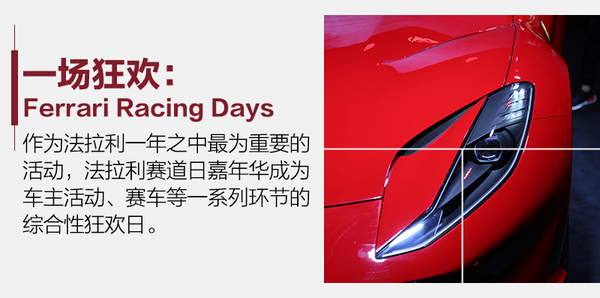 一年一度的Ferrari Racing Days是法拉利每年最重要的活动之一,2017法拉利赛道嘉年华定在上赛,在这个充斥这汽油和轰鸣声的环境下,一群“马儿”尽情释放自己的激情。无论你是法拉利的车主还是法拉利品牌的爱好者,在这里你都能享受到一个成立数十年品牌的赛车基因与魅力。