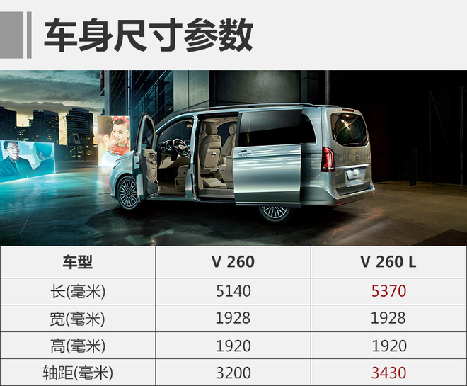 以上挑选3款车型,V 260 领航天窗版与领航版相比仅在天窗等方面做出微调、V 260 L臻藏版仅在车身颜色、轮圈上配以专属套件,其配置则与V 260 L尊贵版相似,不加入此次对比。