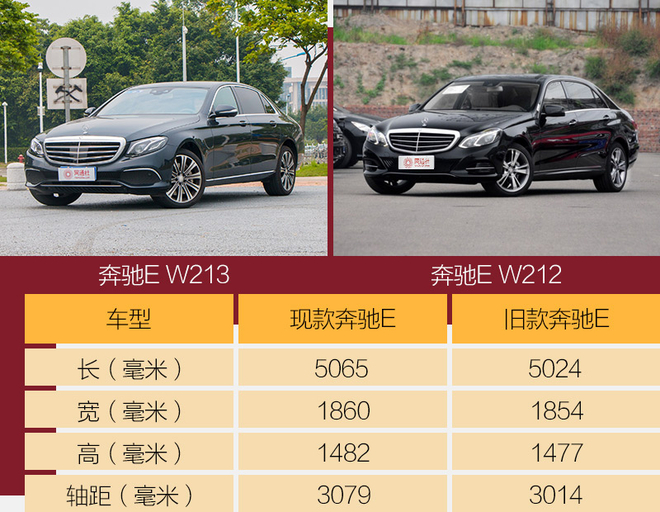 开篇之前,还是要回顾一下奔驰E级的尺寸,新一代奔驰E级(代号W213)在长、宽、高、轴距都要比上一代的E级(代号W212)大这么一点,在视觉上给我的感觉就是车身比例更加协调。