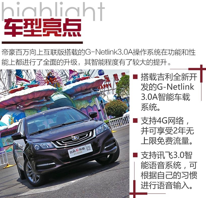 在上个月时,吉利发布了全新技术品牌——iNTEC“人性化智驾科技”,在此之中就包括了G-Netlink智能车载互联系统,今天的主角帝豪百万向上互联版正是首款搭载了吉利最新开发的G-Netlink 3.0A智能车载系统的车型。