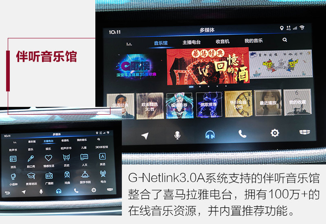 互联网赋予了G-Netlink 3.0A智能车载系统巨大的可能性,功能方面的扩展也更为强大,该套系统可支持讯飞3.0智能语音系统、高德地图导航车机版、伴听音乐馆、喜马拉雅电台等功能,下面我就来为大家一一展示。