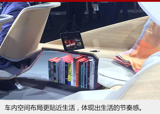 BMW i未来概念座舱将展示未来汽车内饰的设计理念。勾勒出未来宝马将如何通过自动化、互联化、电动化、共享化,呈现一个更安全、更高效、更便捷的移动出行生活方式。是集出行、办公、购物、阅读、娱乐等多种功能于一体的全新的生活空间。