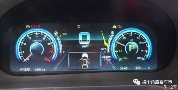上图为“环塔”版唐赛车一键启动开关处于未启动的ON状态特写。依然是量产版唐的全液晶组合仪表,97%剩余电量,电驱动续航里程77公里,意味着“环塔”版唐赛车为早期的“唐80”车型改进而来。