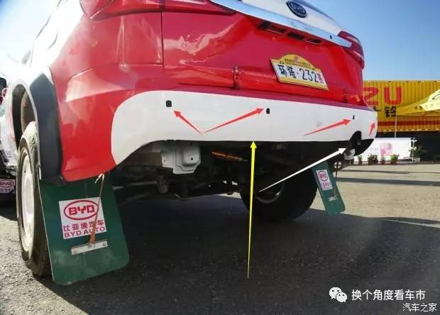 黄色箭头:拆掉后保险杠下段,增加车身后部离去角
