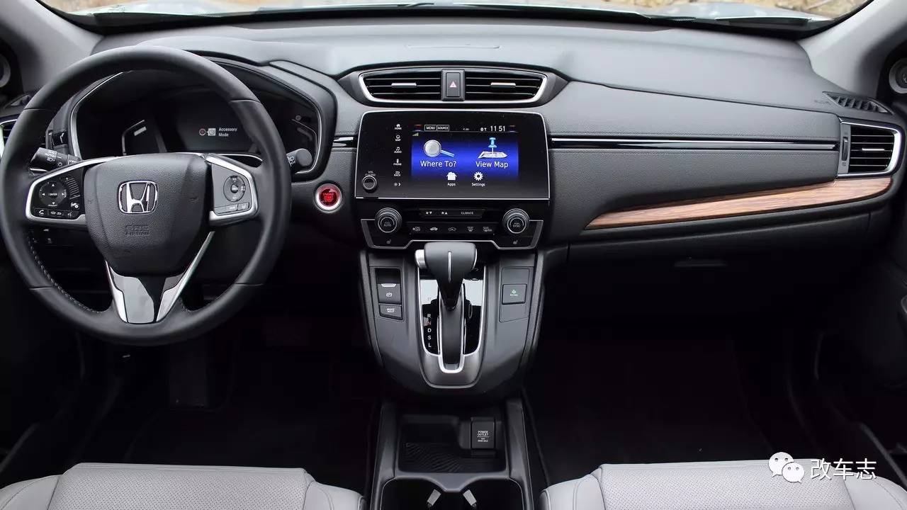 内饰方面,新CR-V基本延续了现款车型的布局,变速挡杆依然和中控台于一体。采用了与新思域类似的仪表和三幅式方向盘,而位于中控台中间位置的大尺寸触摸屏幕看起来极具科技感,同时内含支持语音激活CarPlay/Android Auto的多媒体系统。还配备了可远程启动空调功能、电动尾门等实用配置。