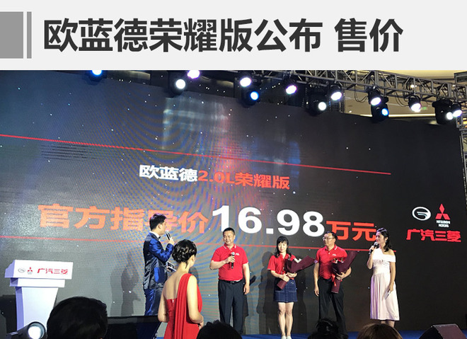 广汽三菱欧蓝德荣耀版车型已经发布,新车作为2.0L两驱版的新增车型,丰富消费者选择。同时,荣耀版车型在外观内饰与现款2.0L车型保持一致的基础上,增加16项配置。网通社从广汽三菱官方了解到:欧蓝德荣耀版正式上市,售价为16.98万元。