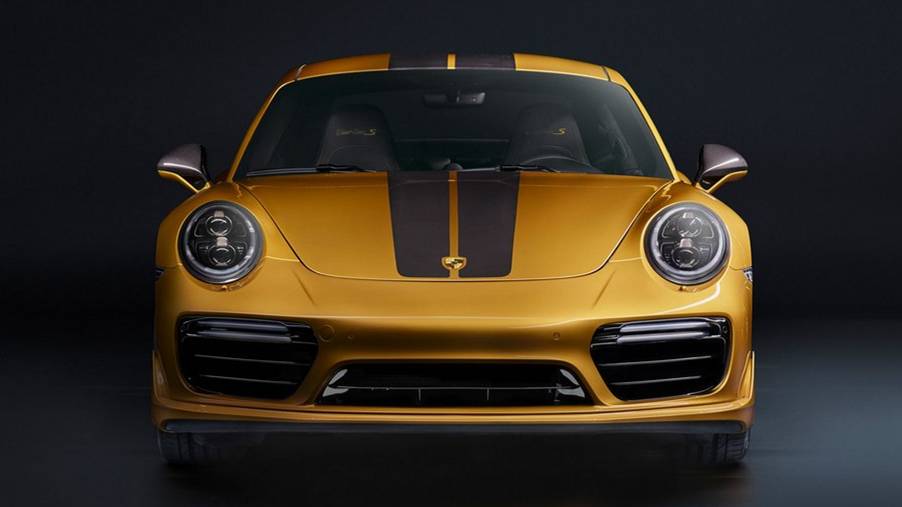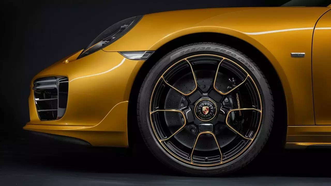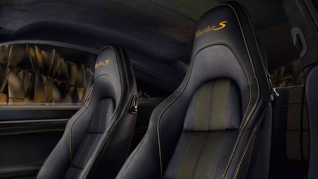 内饰方面,该车整体布局与911 Turbo S保持一致,使用了大量皮革和碳纤维材料进行覆盖,采用了黑色为主、金色为辅的色彩搭配。配备了18向可调节带有金黄色双条纹的运动座椅,此外,门槛护板表面也采用了碳纤维材质,并刻有彰显身份的"Exclusive Series"的标识。总言之,该车无论外表还是细节处都充满了"贵族"的气息。