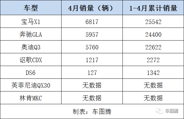 从销量数据来看,今年4月,宝马X1销量为6817辆,1-4月销量合计25542辆;奔驰GLA销量为5957辆,1-4月销量合计24400辆;奥迪Q3销量为5760辆,今年1-4月销量合计22622辆。BBA依然垄断了这个价位区间的销量,不过讴歌CDX也有不错的销量表现。
