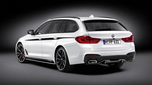 外观方面,新车换装了一套更加运动的黑色M套件,其中包括熏黑的中网、行李架,碳纤材质的前唇、侧裙、尾部的扩散器、后视镜盖。全新5系旅行M套件版还换装了更大尺寸的刹车盘以及更加醒目的红色卡钳。新车还在侧裙等部位增加了“M PERFORMANCE”字样,表明了其特殊的身份。