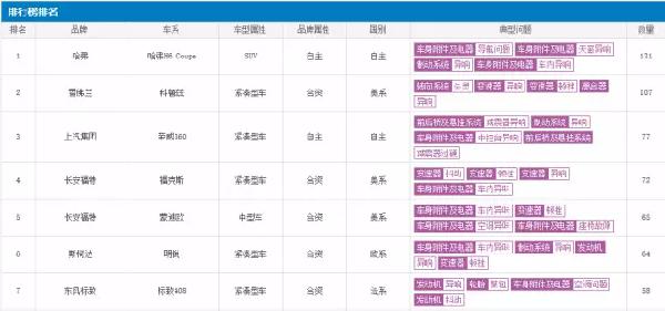 车主反映最强烈的是:导航问题、天窗,制动异响。