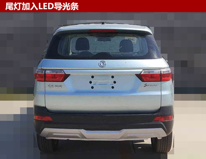 风光S560侧面线条流畅,车身腰线从车头贯穿至车尾,力量感十足;熏黑处理的D柱营造出悬浮式车顶的视觉效果,轮拱、侧裙等位置均被黑色包裹件覆盖。尾部造型方面,新车设计层次感分明,不规则造型尾灯与前大灯相呼应,灯组内部加入LED导光条,点亮效果十分醒目。