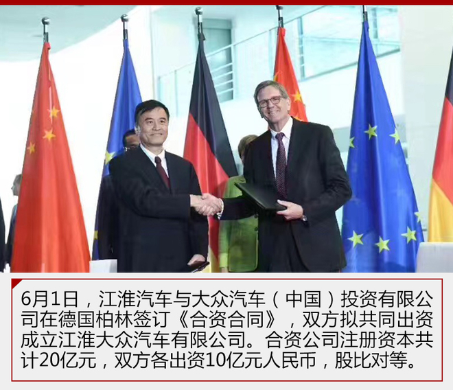 此前,在国务院总理李克强和德国总理默克尔(Angela Merkel)的共同见证下,大众汽车集团与安徽江淮汽车集团股份有限公司(以下简称江淮汽车)于德国柏林正式签署合资企业协议。近日,网通社从大众官方获悉,合肥市政府、大众汽车集团和江淮汽车三方投资协议正式签署。在该协议框架下,大众汽车集团与江淮汽车将共同向快速增长的中国市场推出电动车型产品。