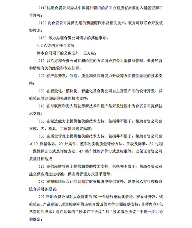 在轻量化、模块化、智能化及合资公司自主开发产品的设计开发、试验验证等方面提供先进的技术支持;在车联网和无人驾驶等新技术和新产品开发过程中为合资公司提供技术支持;帮助合资公司对大众特定的PQ平台进行电动化改造,在设计开发、试验验证、产品制造、质量控制和供应链开发及管理等方面提供支持。(图/文 网通社 马云龙)