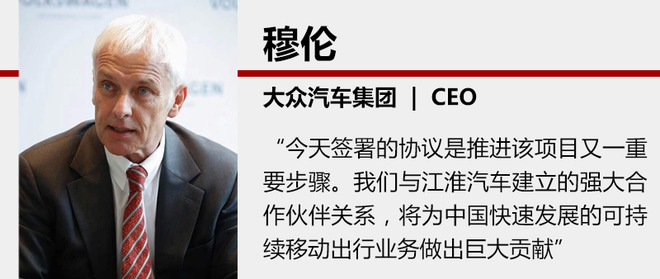 穆伦表示:“在大众汽车集团与江淮汽车共同建立这一开创性的合资企业过程中,安徽省政府与合肥市政府为我们提供了宝贵的支持。今天签署的协议是推进该项目的又一重要步骤。我们与江淮汽车建立的强大合作伙伴关系,将为中国快速发展的可持续移动出行业务做出巨大贡献,与此同时,还将大力推进大众汽车集团从传统的汽车制造商向可持续移动出行解决方案提供者的转变。”