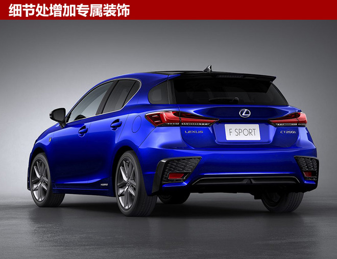 高性能版F SPORT车型在外观方面与常规车型大体保持一致,同时在细节处增加金属黑和网眼元素装饰。同时,新款CT 200h F SPORT车型还配备有17英寸铝合金轮圈,并且拥有多款专属车身及内饰配色。(图/文 网通社 裴健如)