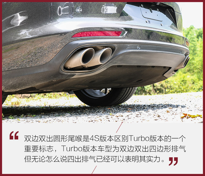 车辆外观几乎与Panamera (配置|询价) 4S标轴版保持一致,除了车身一些小细节。而保时捷注重的是选装件,而我们今天驾驶的这台车选装了运动排气、21寸轮圈、Sport Chrono组件等。