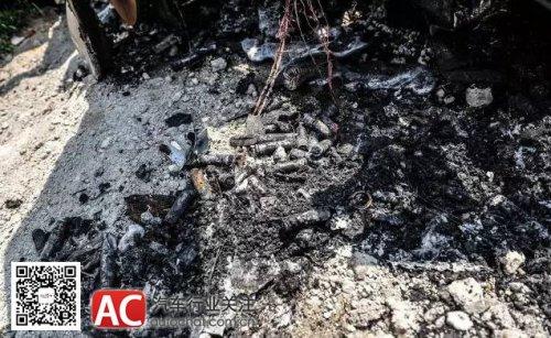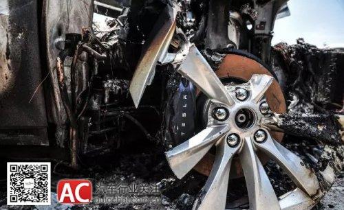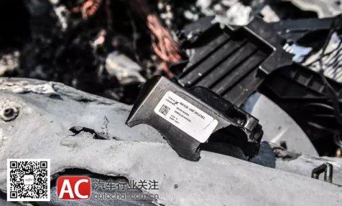 图片中车辆废墟车头部分有一个烧毁的电机,因此这有可能是一台四驱版本的Model X。