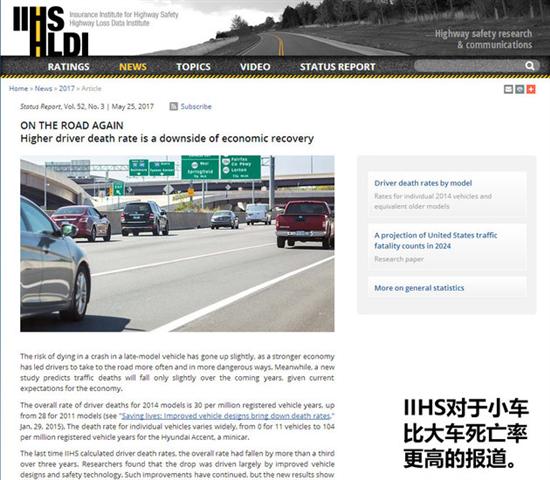 近日,IIHS(美国公路安全保险协会)就发布了一份报告指出:在2014这一年中,尺寸更小的微型车驾驶员死亡率远远高于其他级别的车型,而体型庞大的豪华车和大尺寸的SUV车型则拥有着最低的死亡率。