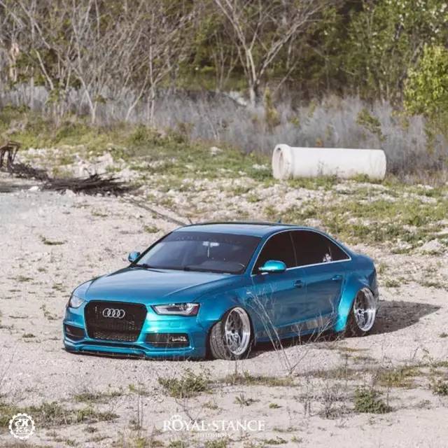 有了宽体和数据夸张的定制轮毂的加持之后,让这辆奥迪A4L宛如一辆小坦克,不管是趴在地上还是在路上走起来,都有一种气势逼人的感觉,最后我们通过一组Roya Stance的美图来欣赏这辆奥迪A4。