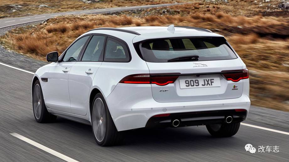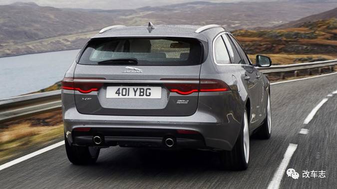 侧面部分,该车采用了十分流畅的线条设计,车身姿态相比现款车型更加低矮,整体偏向轿跑风格。尾部则采用了全新的造型设计,尾灯相比XF轿车尺寸更大,内部结构借鉴了F-TYPE车型的设计元素,整体让人感觉优雅且动感。此外,根据车型不同,该车还将配有单边双出和双边双出两种排气布局。