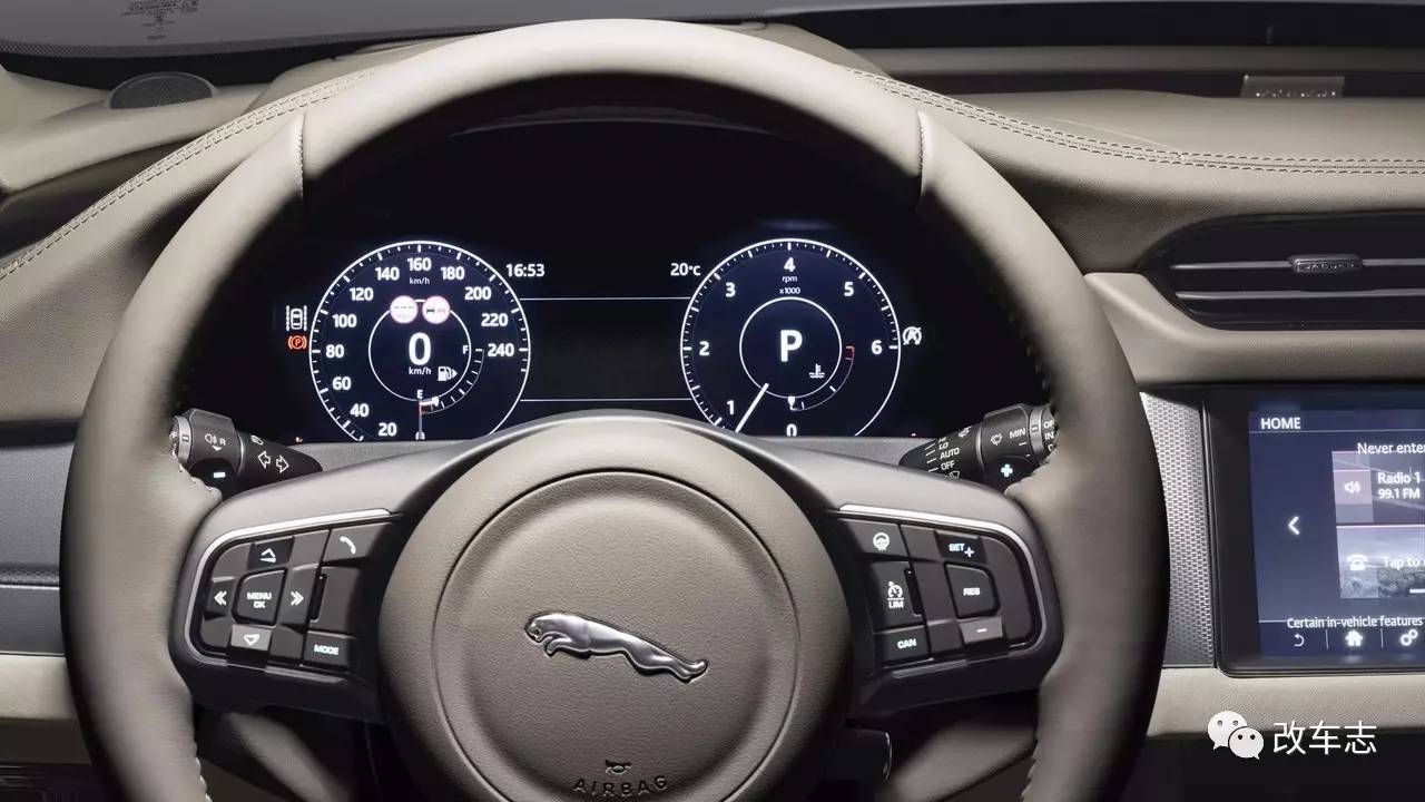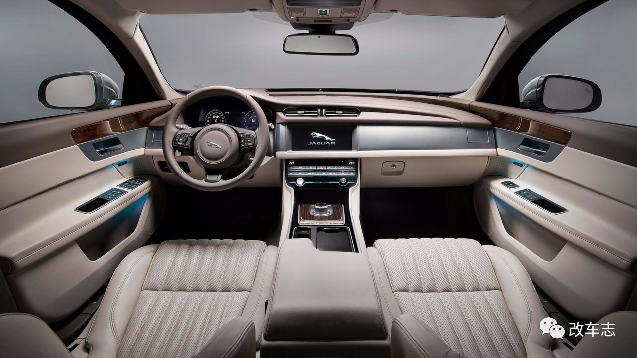 内饰方面,该车与XF轿车基本保持一致,采用了剧院式设计元素。全液晶仪表、大尺寸中控显示屏以及触控面板都为该车增添了不少科技感,同时旋钮周围以及前门采用的木纹饰板也为其提升一些豪华感。此外,该车还提供了全景车顶玻璃可选。