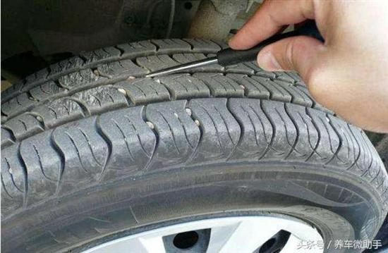 在驾驶过程中还是听到轮胎发出异响后,应及时下车检查。要是看到轮胎被钉子给扎了,不用过于担心,先用泡沫水滴在扎钉处,观察有无气泡,要是有气泡,就表明轮胎在漏气;要是没有气泡,就表明没有漏气。