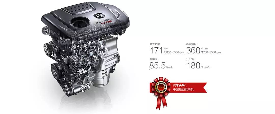 长安CS95最大的亮点在于这款号称“最强动力”的2.0T蓝鲸发动机。它是由重庆长安动力研究院本部与英国研发中心联合开发,采用了增压,直喷,双VVT等主流技术,在长安BlueCore发动机家族中马力最大(最大功率160kw,峰值扭矩350牛米)。