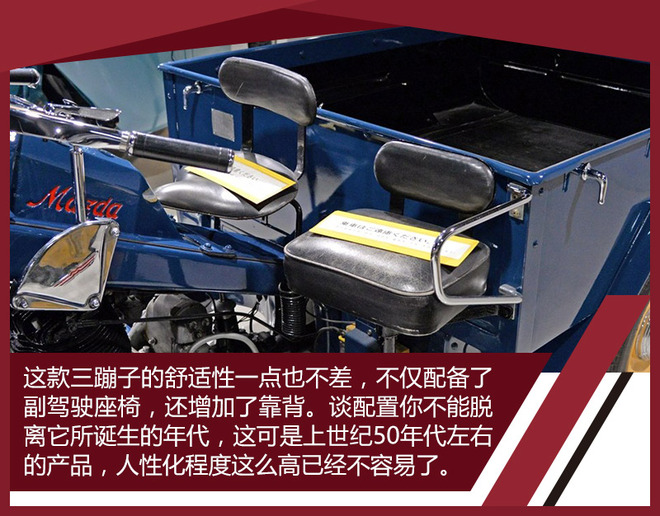 别以为载重大就只能拉货,GB的在做工方面也是挺讲究的,一体式车把采用镀铬表面、仪表直接镶嵌在油箱上面,单看这一小部分的设计和做工,比哈雷·戴维森都不差,别忘了这可是一辆正宗的三蹦子啊。另外,这款GB三蹦子已经在舒适性上有了长足进步,看这个副驾驶的座位,还带靠背呢!