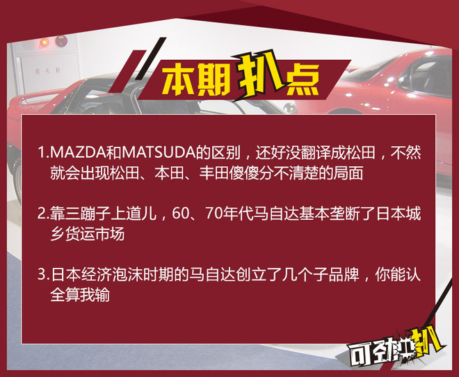 很多都会说“松田”这个姓氏的日语发音和马自达相当接近,记得在介绍雅马哈的那期栏目中曾经提到过罗马音这件事,如果把“松田”这个姓氏的罗马音写出来就是“MATSUDA”,这个发音可不便于欧美人士正确读出来,因此松田重次郎找了一个和自己的名字最相近的“MAZDA”作为公司的名称(关于这一点,我们在下文中详细解释)。所以说你得庆幸当时松田重次郎起了个外国名,要不然现在就变成了丰田、本田、松田,你说晕不晕。