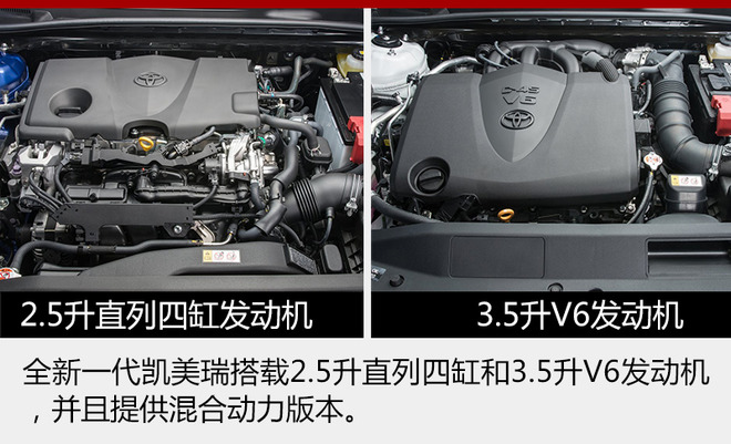 动力方面,全新一代凯美瑞搭载2.5升直列四缸和3.5升V6发动机,并且提供混合动力版本。其中2.5升发动机的最大功率为153千瓦,峰值扭矩为252牛米;3.5升V6发动机的最大功率为224千瓦,峰值扭矩为362牛米。两款发动机均匹配8速自动变速箱。混动版车型则搭载了丰田全新Toyota Hybrid System (THS II)混合动力系统。(图/文 网通社 裴健如)