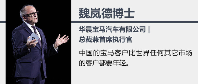 魏岚德博士去年10月正式担任华晨宝马汽车有限公司总裁兼首席执行官,在这短短8个月的时间内,他对中国印象最为深刻的是这里的变化之快和无处不在的生机盎然。更让他惊讶的是,宝马的中国客户比任何时候、任何地方的客户都要年轻,平均年龄只有35岁。