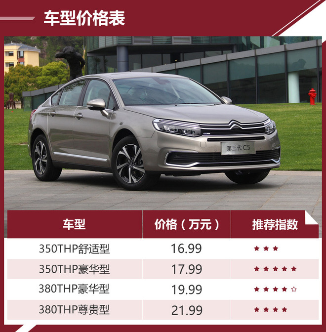 随着国内购车消费群体的逐渐年轻化,广大消费者对于传统沉稳造型的中型车也逐渐出现了审美疲劳,不少车型也明显加快了改款或是换代的周期频率。于6月23日正式上市的雪铁龙第三代C5就是一个典型的代表,新车的售价为17.99-21.99万元,更加符合潮流的外观设计与科技感更强的内饰配置让它更具吸引力,且现在购买还可享受到全免购置税,并赠送3年5次保养,可谓是诚意十足。但对于不少持币待购的消费者来说,此次上市的四款车型在价格和配置上的差异或许会有些难以取舍。没关系,本文就将为您找到一款最为适合的车型。
