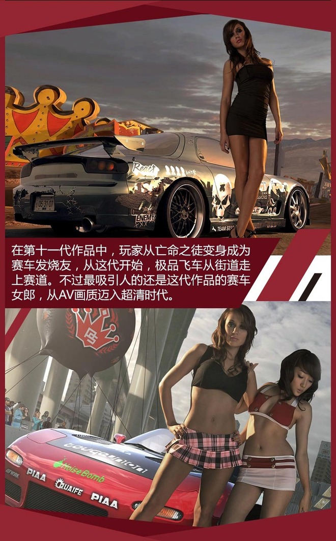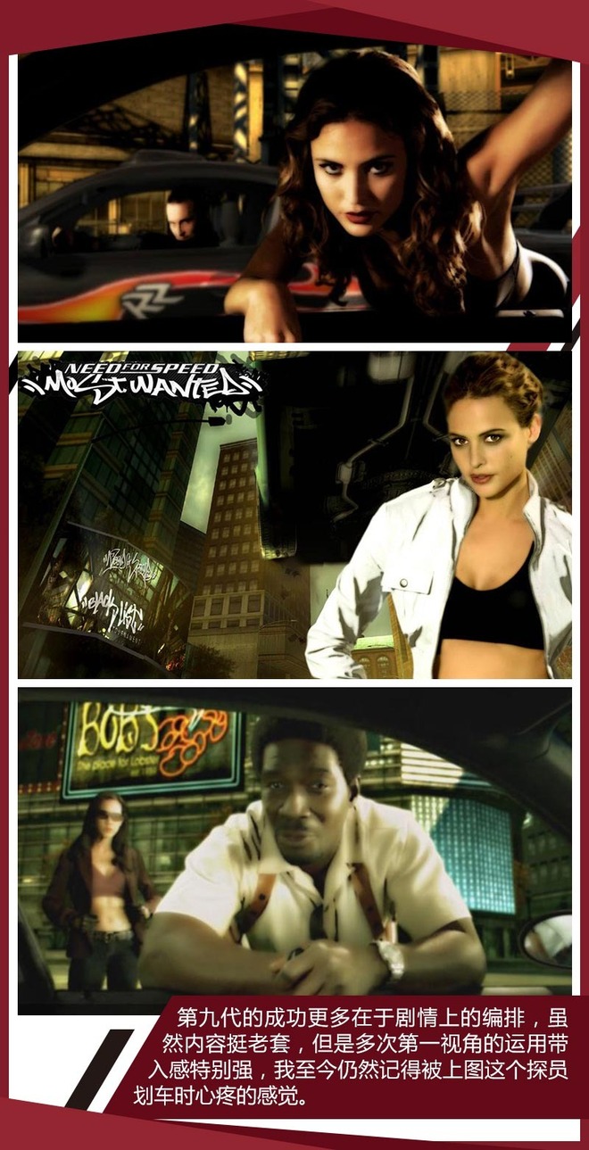 第九代作品《极品飞车:最高通缉》可以说是最成功的一代,它融合了热力追踪、和地下狂飙的特点,同时剧情的代入感可以说达到了前无古人后无来者的程度,除此之外大美女警察卧底恐怕是培养了一代舔屏玩家的游戏角色。