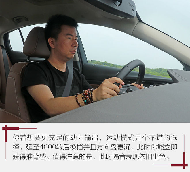 当然,你还可以通过两种方式进一步提升乐趣。方法一:挂入手动模式,不过稍显遗憾的是换挡拨片这项配置并未随之到来,上汽通用的领导也表示会根据市场需求考虑后续进行加入。另外,全新君威的手动模式与探界者的L挡不同,前者要在特定时速下切换特定范围内的挡位,后者则是限位挡。方法二,你可以选择运动模式,此时转向更为精准,方向盘要更沉,并且会延至4000转后换挡,这样一来,推背感会在更多的时候听从你的召唤出现。