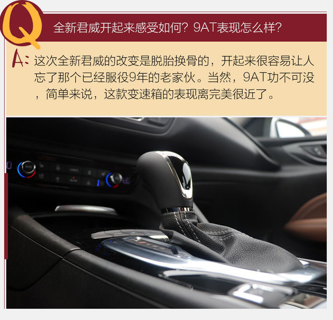 其实,全新君威给我最大的感受不是上面这些,而是9AT真的很顺,这不仅仅是因为此前6AT让人诟病的换挡逻辑与平顺性。简单来说,你在日常驾驶中基本不会注意到变速箱的反应,但这并不意味换挡积极性打了折扣,拿捏适中的换挡时机既不会因提前升挡造成唐突之感,也不会在某一区间内有过多的迟疑,这些对于舒适性来说至关重要。