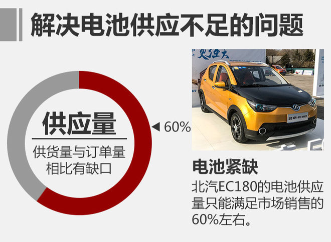 张勇表示,北汽新能源目前产能受电池紧缺影响严重,电池产量和公司的预计有差距,但电池的生产线要提升产量,建设周期长。尤其是对于国民车EC180,尽管销售处于供不应求的状态,但在生产环节,电池的供货量与需求量相比差距较大,只能满足北汽新能源市场销售的60%左右。
