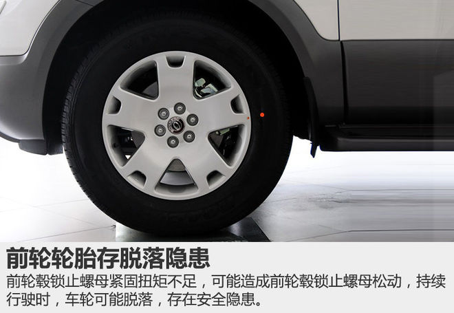 部分车辆由于车辆组装时前轮毂锁止螺母紧固扭矩不足,可能造成前轮毂锁止螺母松动,导致车辆行驶中在前轮处可能发出异常噪音或出现车辆振动现象。如忽略噪音或振动持续行驶时,车轮可能脱落,存在安全隐患。