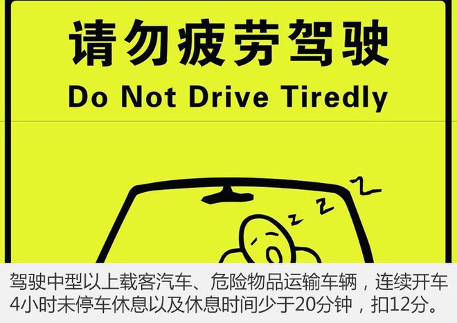 真相:2013年1月1日实施的《机动车驾驶证申领和使用规定》中规定:续驾驶中型以上载客汽车、危险物品运输车辆超过4小时未停车休息或者停车休息时间少于20分钟的将记12分。并非是由之前的记6分调至记12分,而是一直都是记12分。