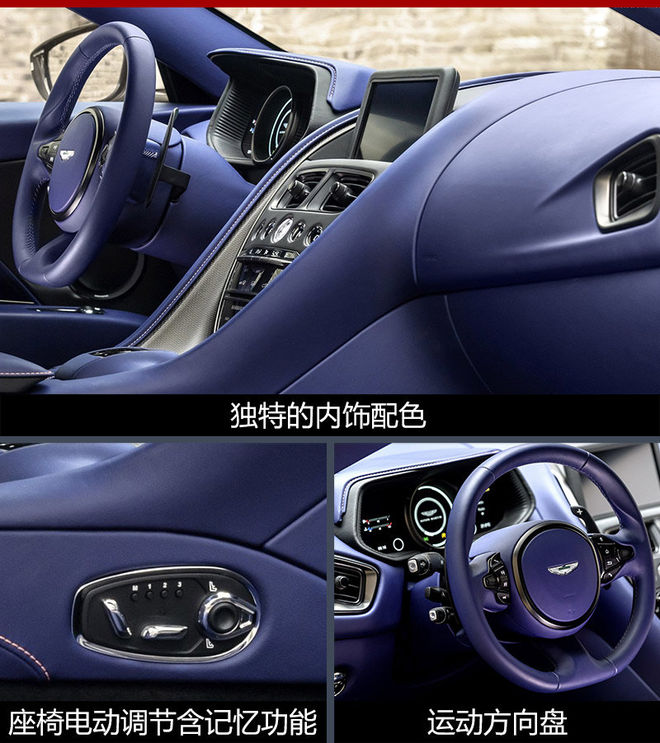 DB11 V8版本车型内部大量采用了真皮包裹,营造出很强的豪华感。新车提供丰富的内饰颜色及配置可供用户选择,除了阿斯顿·马丁Q定制部门倾力打造的一套珍藏版套件,还提供精选套件以及设计师套件供选配,满足用户各种需求。