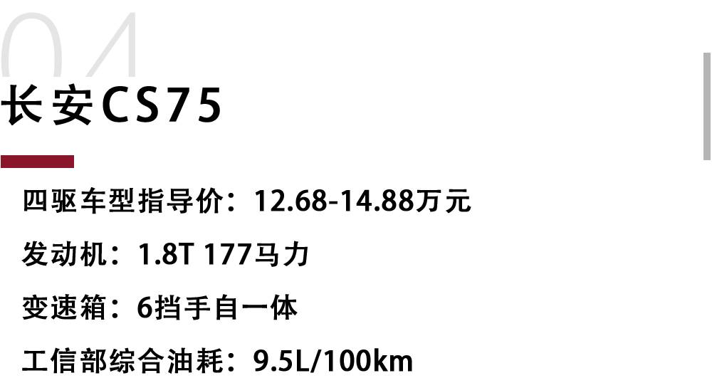 砖叔点评:四驱长安CS75虽然本质上还是城市SUV的设定,但其实这套四轮驱动系统的脱困能力属于同级车比较优秀的水平了,比部分合资对手都要好。况且CS75的行驶质感一直被人津津乐道,可见也是一款挺不错的城市代步用车。