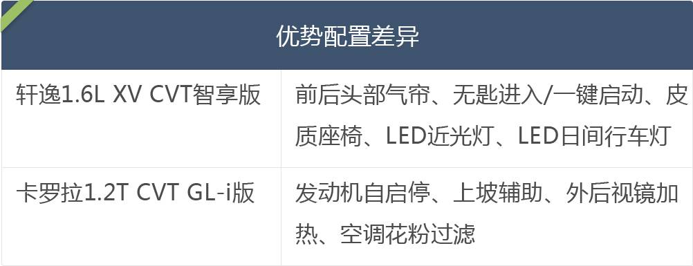 不难看出,轩逸在配置上相对是更有优势的,毕竟在本身的原定价上,轩逸的智享版就要比卡罗拉GL-i版贵一万元左右。