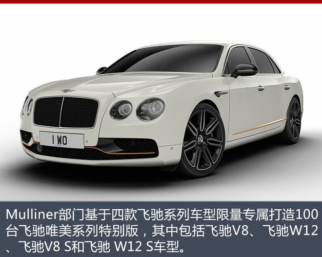 外观方面,飞驰唯美系列车型采用醒目的前保险杠设计(仅适用于飞驰V8及飞驰W12车型),车身下部饰以细线条纹,并配备有LED迎宾灯,夜晚可在地面投射出“Mulliner”的字样。此外,前保险杠饰件与贯穿车身的细线条纹均采用醒目的专属色调。