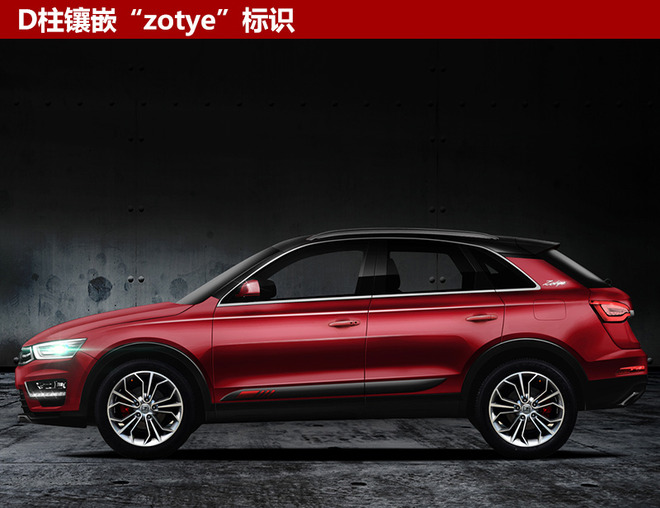 众泰SR7前脸换装更具创意感的“蜂巢”式进气格栅,全新“Zotye”标识配以两侧冰蓝运动大灯,更显大气。新车对车身侧面线条进行优化,配以四个大尺寸多辐式花瓣形双色铝合金轮圈和更加运动的红色卡钳,使整车更显动感、时尚。此外,D柱位置后方镶嵌的“zotye”标识更显档次,全新涂装让尾翼呈现出悬浮式效果,看起来更加时尚酷炫。