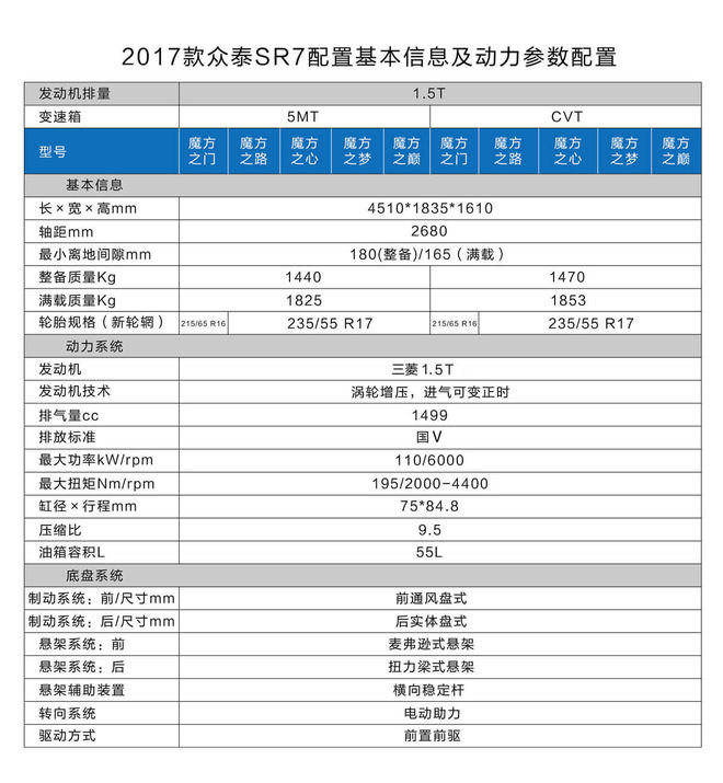 新款众泰SR7共推出魔方之门、魔方之路、魔方之心、魔方之梦和魔方之巅5个版本10款车型,新增了“旗舰”魔方之巅车型,预售价为6.98-11.18万元。其中入门版车型预售价先比现款车型售价下调了5,150元。目前消费者可通过众泰S官方网站或各4S店进行预订。