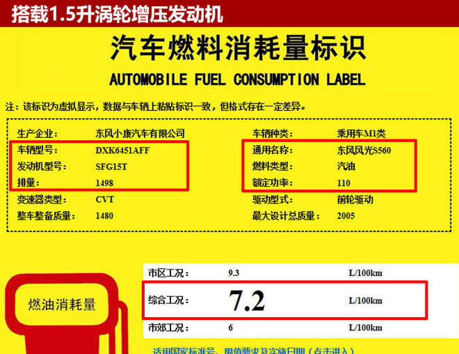 从国家工信部公布的信息可知,东风风光S560将搭载型号为SFG18的1.8升自然吸气发动机以及型号为SFG15T的1.5升涡轮增压发动机,额定功率分别为102千瓦和110千瓦。此外,1.8升发动机综合油耗7.5升,1.5T发动机综合油耗7.2升。