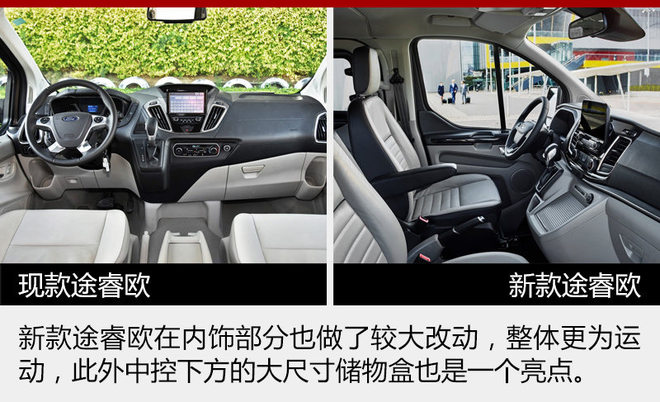 途睿欧 (配置|询价)是福特旗下一款家用MPV车型,定位在20万级别。今年3月份途睿欧自动挡车型上市,途睿欧也将占据更大的市场份额。网通社获得一组新款途睿欧官图,新车前脸内饰均有较大调整,整体更为运动,此外,配置也有所升级。