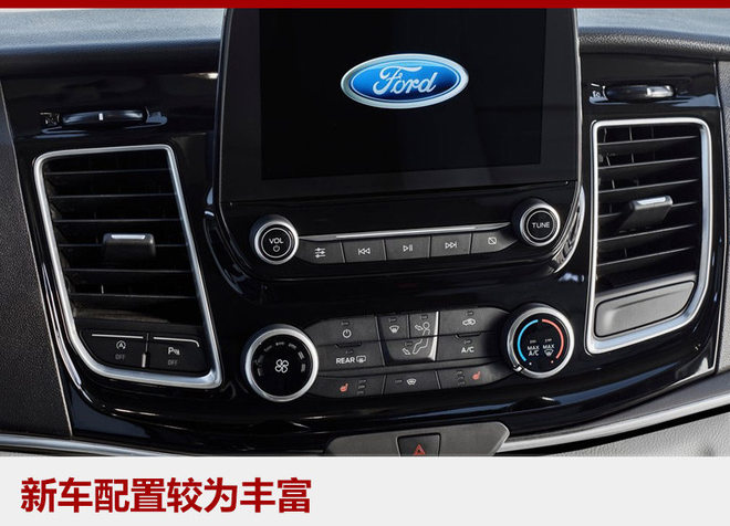 内饰方面,新车依旧做了较大调整。首先最直观的便是将原来的四辐式多功能方向盘改为三辐,使车辆内部更具有时尚感。此外,新款途睿欧中控部位均有所改动,在材质和设计上更为高档。其中,中控屏幕采用了与新嘉年华相同的样式,并继续采用悬浮式设计。在挡把区域右侧,新车还加入了较大尺寸的储物盒,也符合其MPV的车型定位。